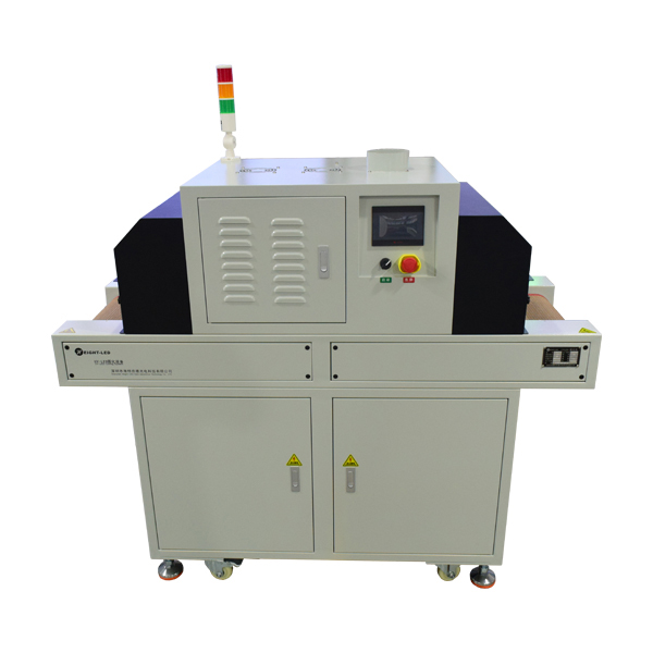 2、設備提供連續模式和后端模式可選,連續模式下,點擊啟動按鈕,UV機傳送帶及UVLED一直工作,點擊停止按鈕停止UV機工作;后端模式下,點擊啟動按鈕,UV機傳送帶及UVLED開始工作,當后端傳感器感應到產品后,傳送帶及UVLED停止工作,當產品拿走后繼續進入下一個循環。