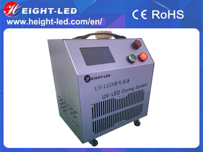 The UV-LED curing system adopts the LED lighting method, include controller(inner water chiller) and portable uv led head,with 395nm wavelength, curing area is 20x150mm, fast curing for the uv paint and uv ink on furniture or floor,the bottom is equipped with wheels for easy movement