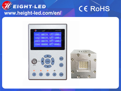 HTLD-4II-FS2020-NH is a high quality UVLED curing system, the system includes the controller, UVLED irradiation head , controller and cable. UVLED head with imported high-intensity UV LED integrated UV spectral wavelength of 365nm, 385nm, 395nm, 405nm, the use of water cooling, the effective curing area of 20x20mm, support for external signal input and trigger,mainly used for the printing machine.