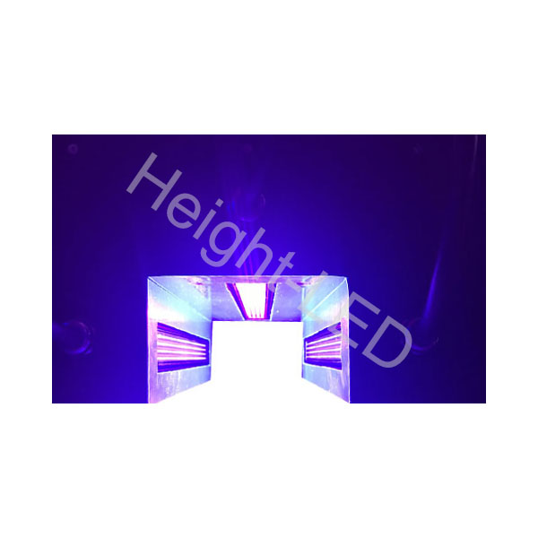 三面出光,頂部及左右兩側,照射面積都是300x20mm,頂部395nm,兩邊365nm,散熱方式:風冷
